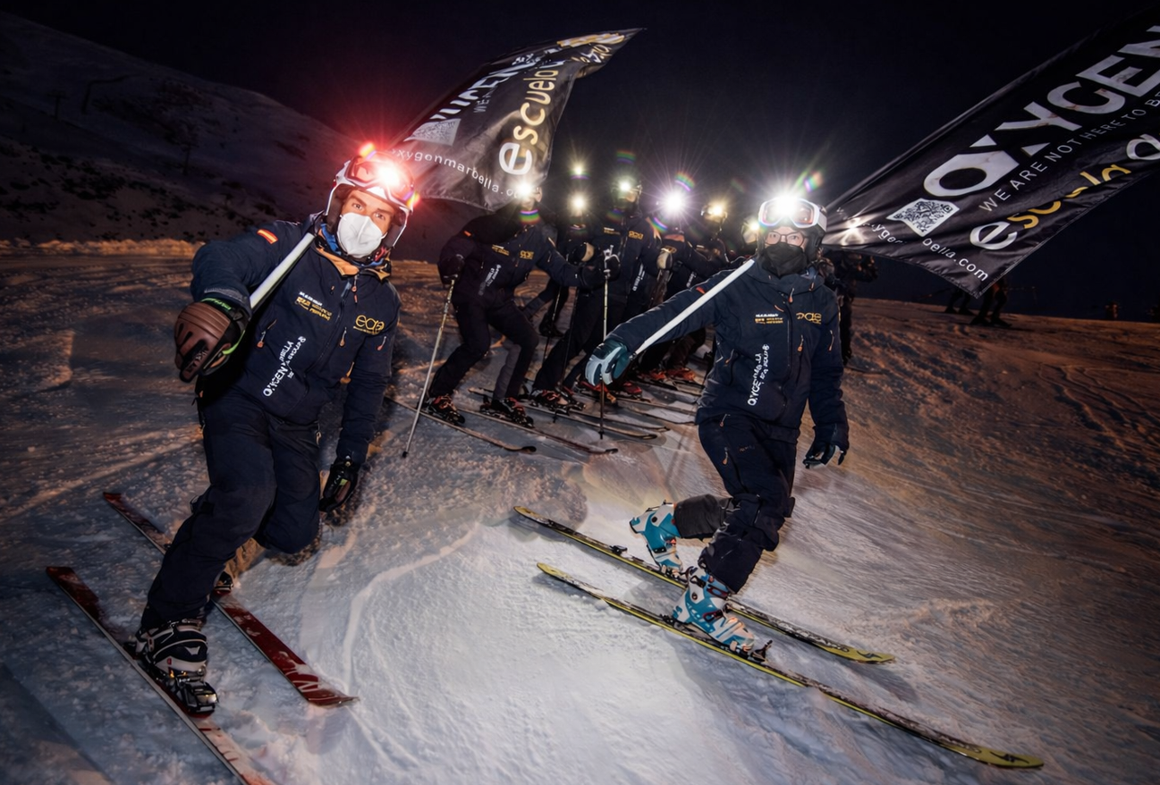 Durante las recientes jornadas en pista, tanto en actividades diurnas como en eventos nocturnos sobre nieve, los profesionales de la Escuela Andaluza de Esquí han lucido la imagen corporativa de Sea Group Real Estate, reforzando la presencia de la marca en un entorno vinculado al estilo de vida activo, la superación y el deporte de montaña.
